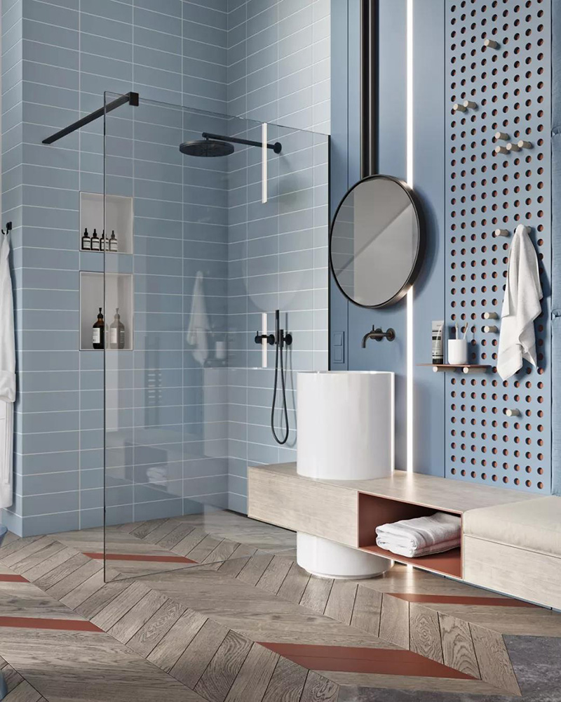 家里有条件的业主,可以考虑浴缸+淋浴屏的设计,这样既兼顾淋浴的方便快捷,又能偶尔享受泡澡的乐趣。