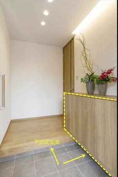 这点设计我们说过很多次了,优势就是方便换鞋,保证室内的干净,从而减轻做家务的负担。另外日本的玄关柜通常也是半悬空的,空出的部分不一定需要放鞋,更多的是方便打扫卫生。