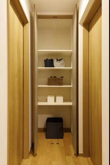 别看日本的玄关柜不大,但是通常玄关旁边都还有一个储物间,衣服鞋子杂物统统都能放,这儿的隔板设计比较特别,可以上下调动,根据业主的身高来定就好。