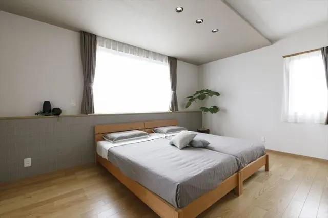 卧室里的床是两张拼接在一起的,灵活性比较好,需要的时候拉开也可以。